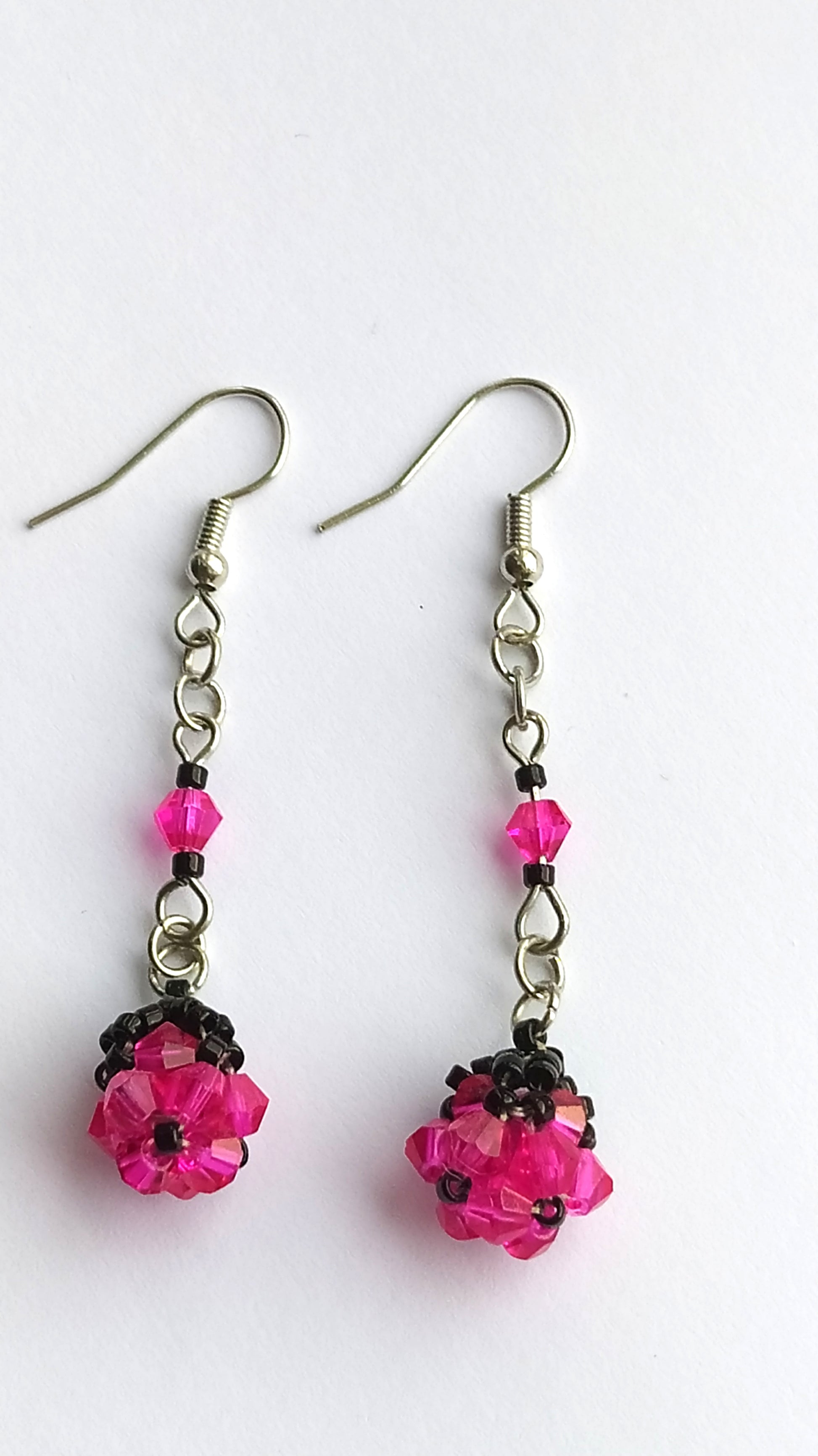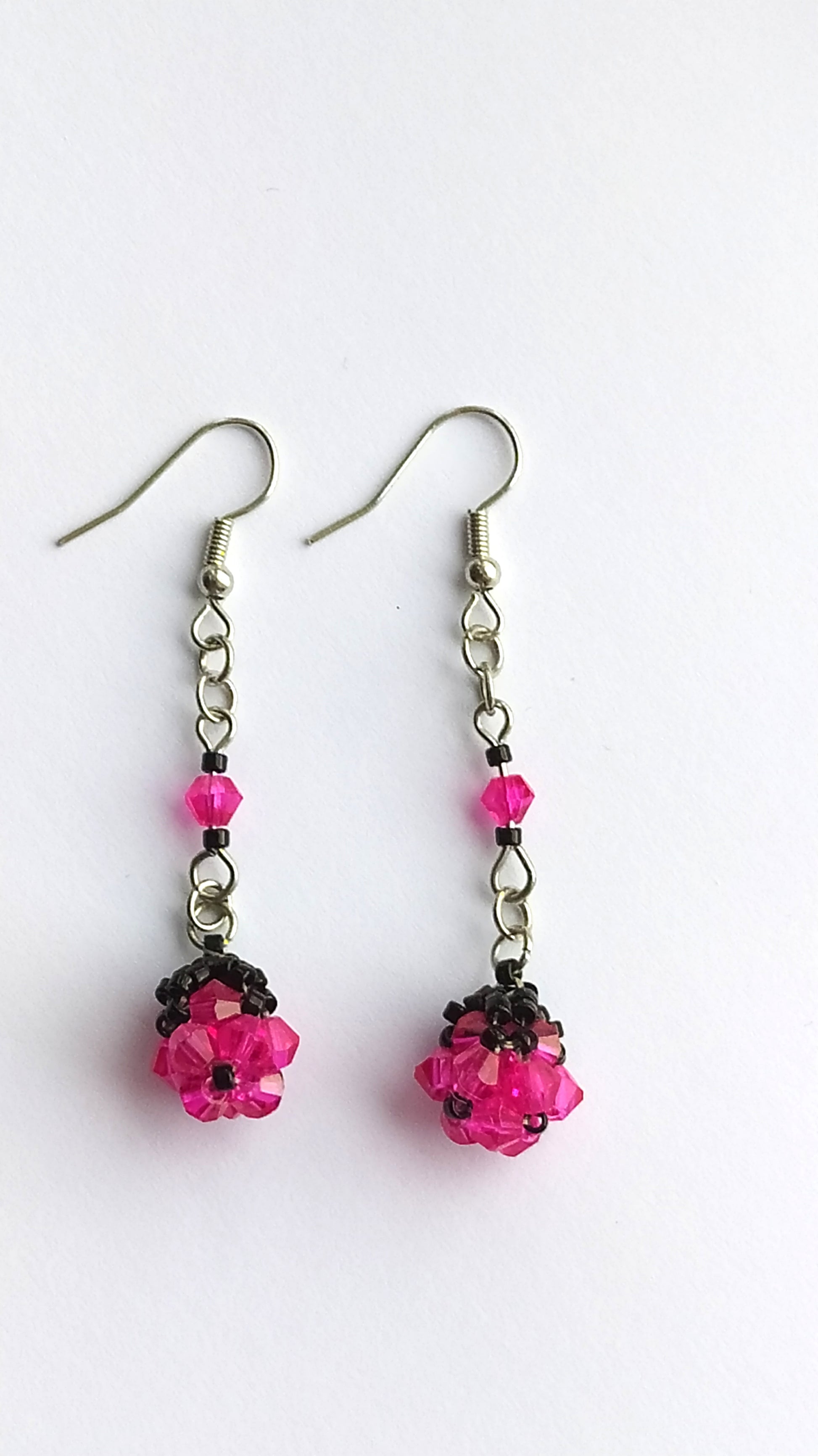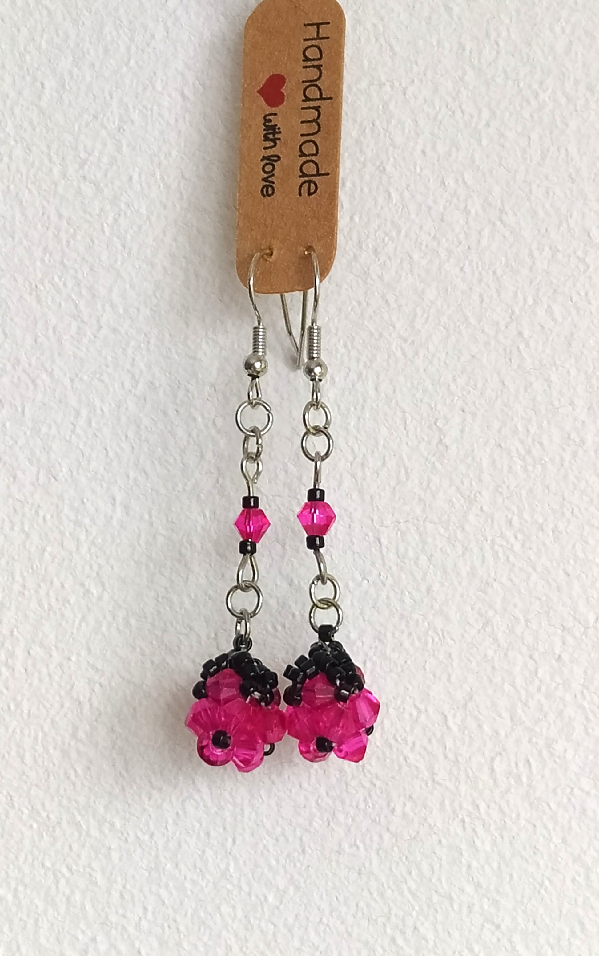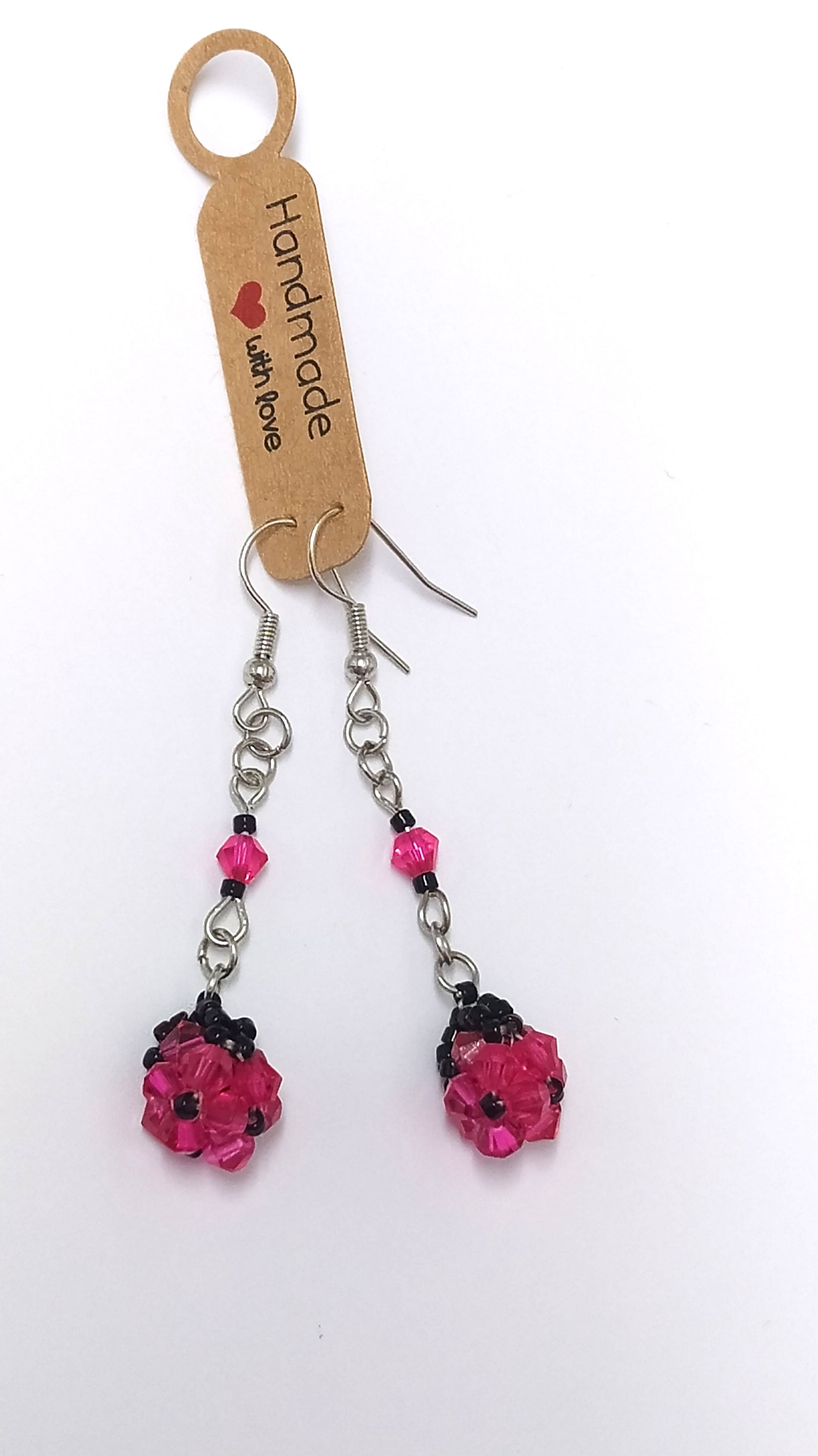 Beautiful earrings with black and pink crystal beads, handmade with good and positive energy.