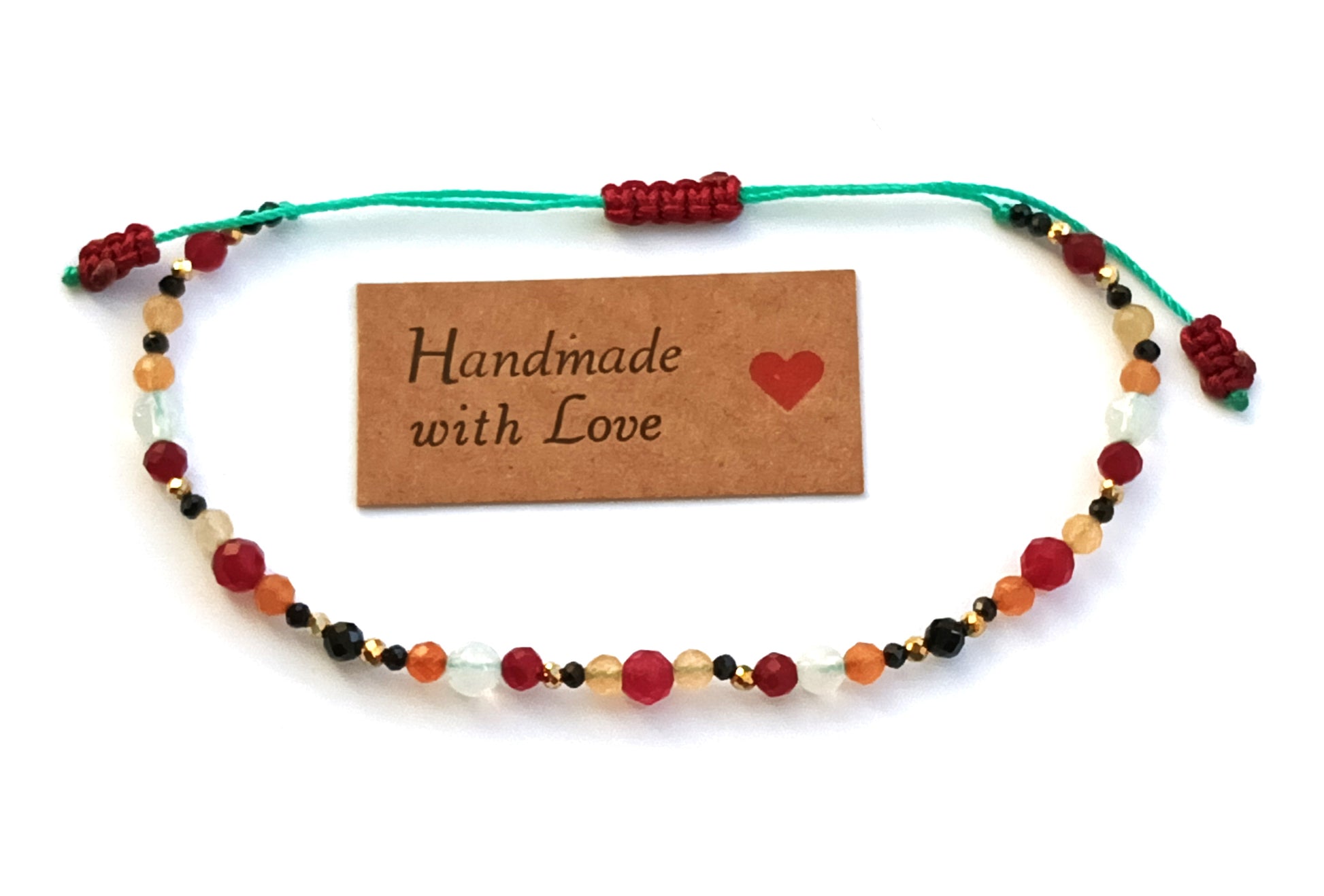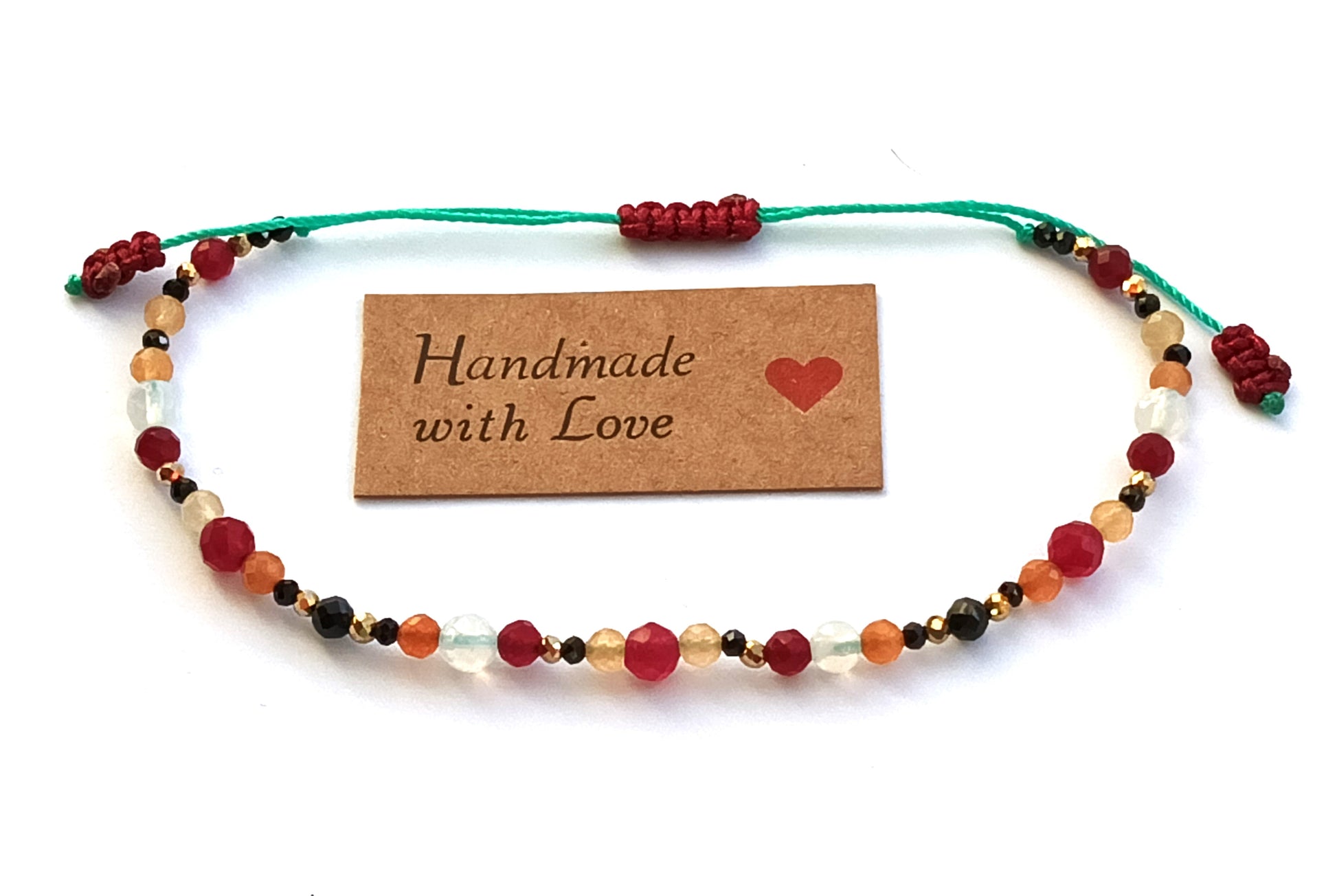 The beautiful, delicate bracelet is made of green string and natural stones, handmade with good energy. It's perfect as a gift for various occasions, as well as for yourself.